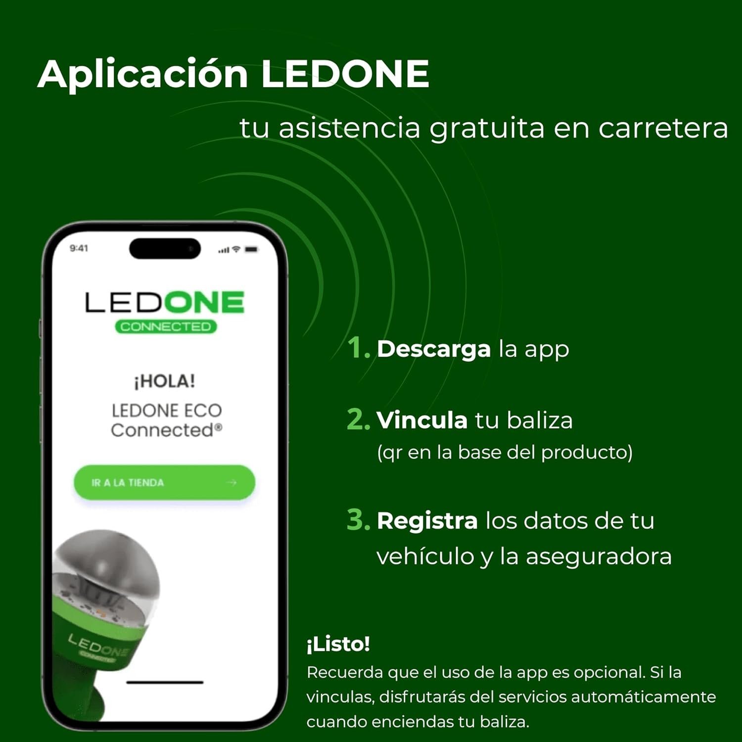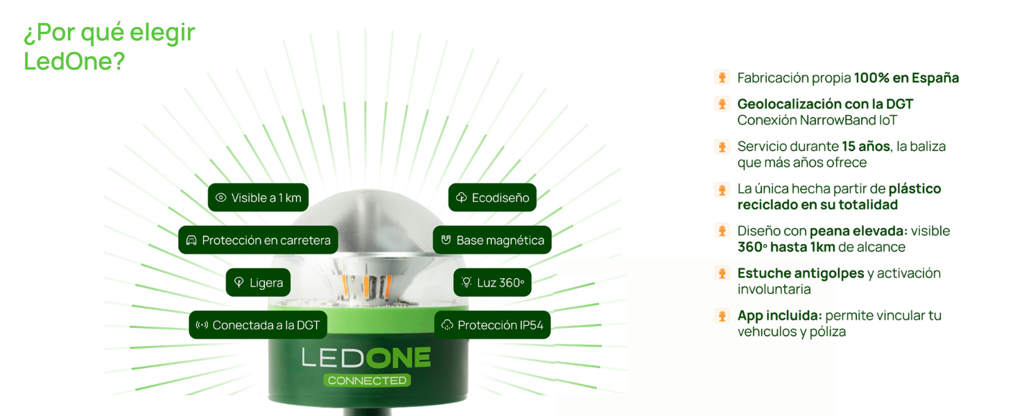 Esta baliza V16 LEDONE es imprescindible para circular, cumple con la obligatoriedad DGT 2026.